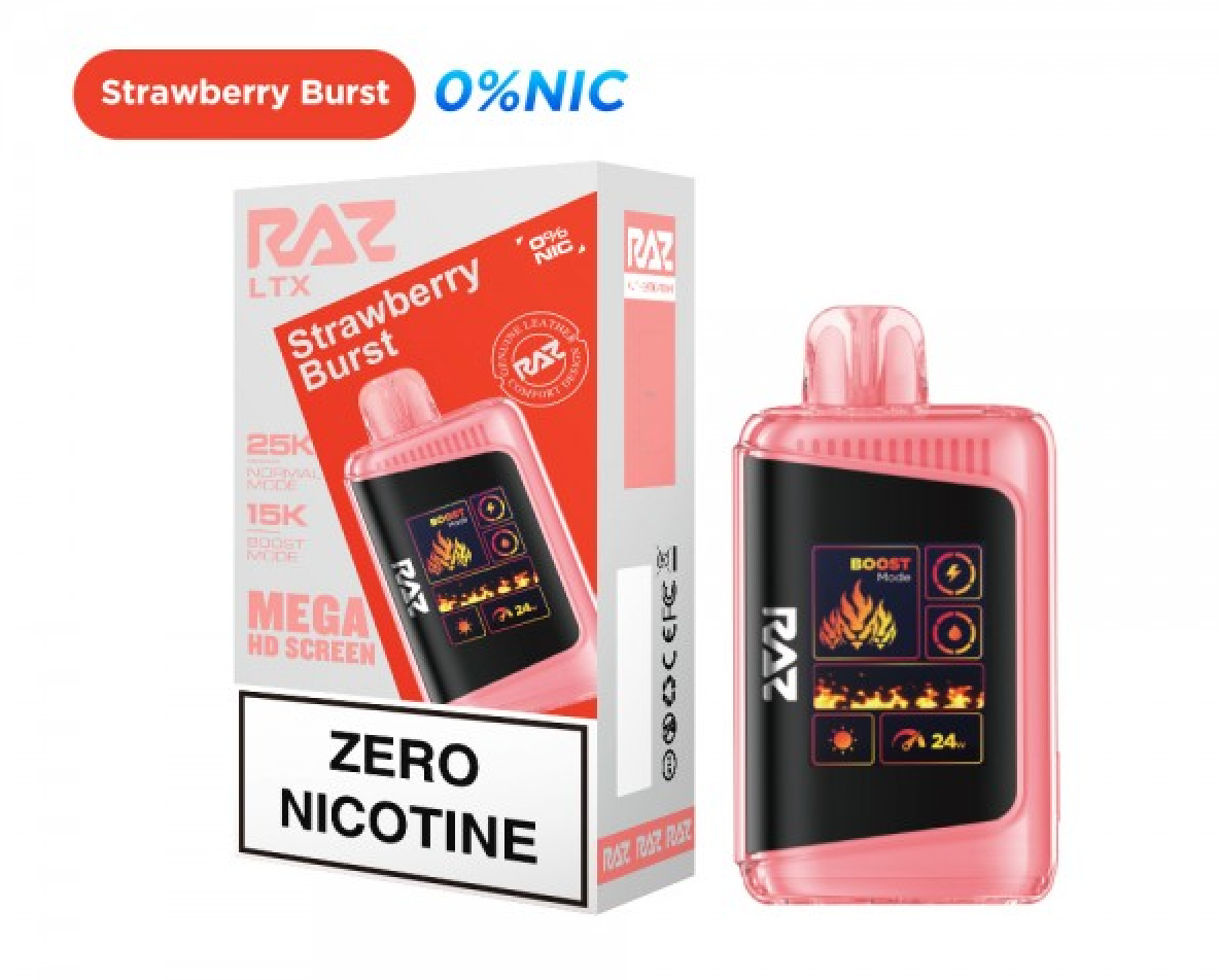 - Strawberry Burst: It’s delightfully juicy! The sweet allure of Strawberry Burst by RAZ DC 25000 is undeniable. Ripe strawberries literally burst with flavor in this terrific blend, for a taste of summer’s strawberry fields with every puff.